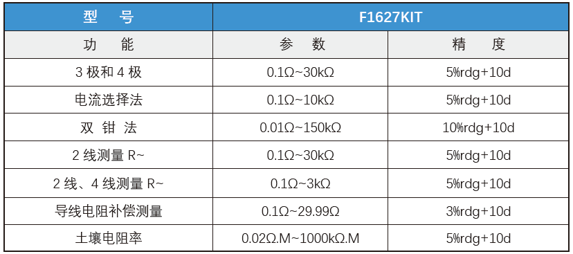 F1627KIT可以完成各種類型的接地電阻測量,能夠對工作接地、保護接地、雷電保護接地、防靜電接地、接地極、接地線、接地裝置、接地網進行地阻測量。